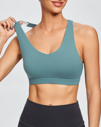 Women Seamless Back Criss Cross Solid Color Sports Bra Yoga Tops White Black Light Green Blue S-2XL