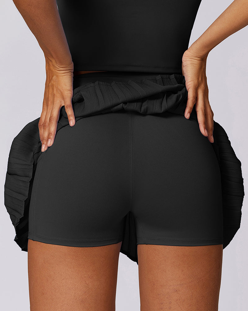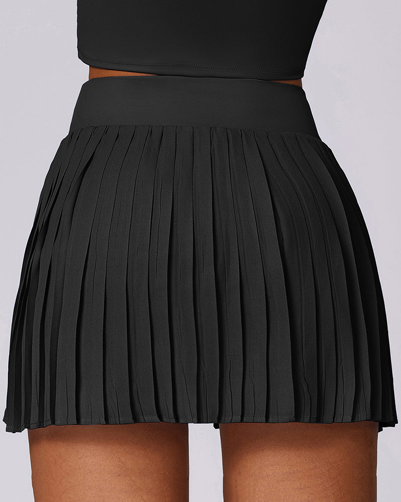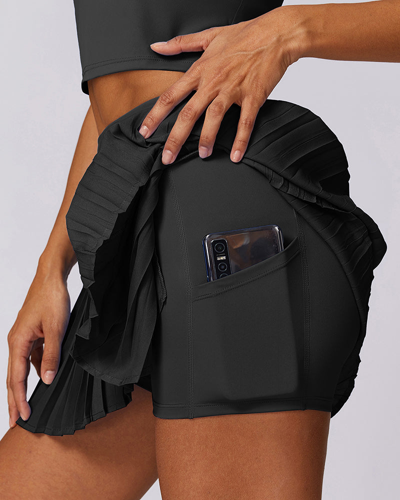 Fitness Side Pocket Lined Tennis Pleats Skirts Black White Blue Purple S-XL