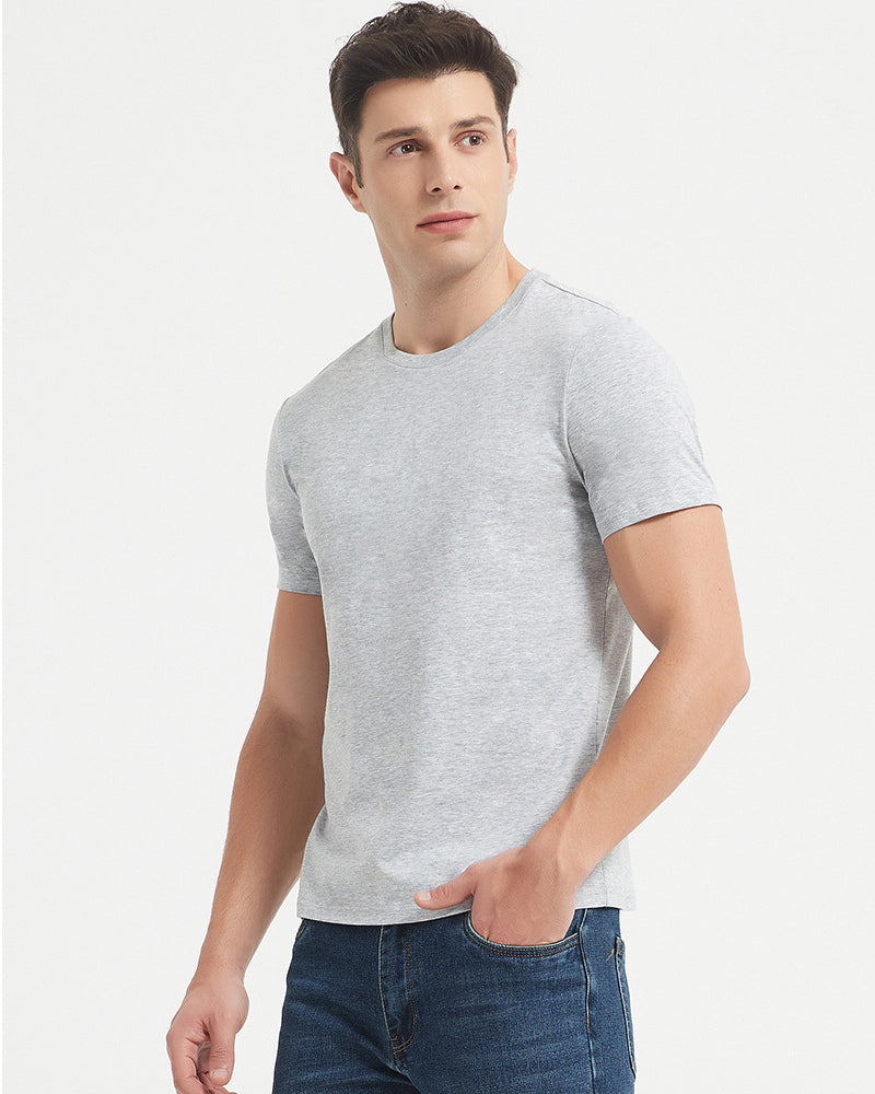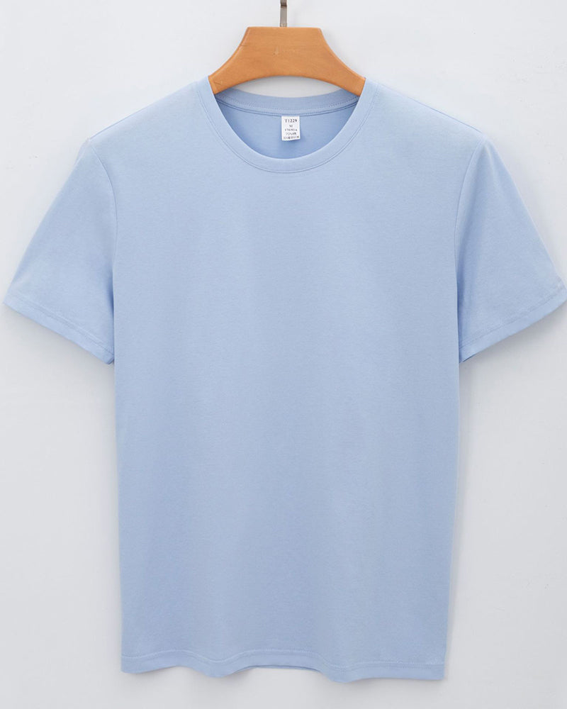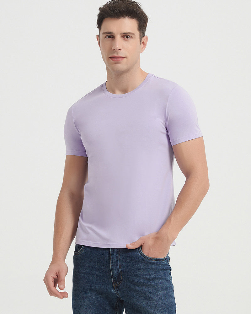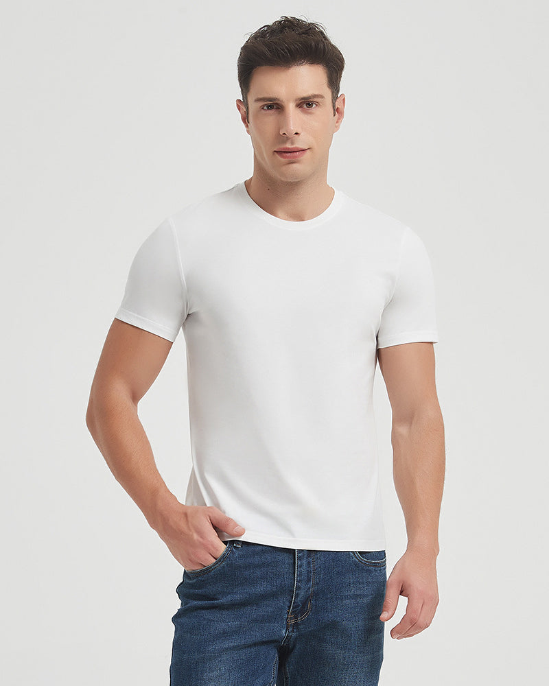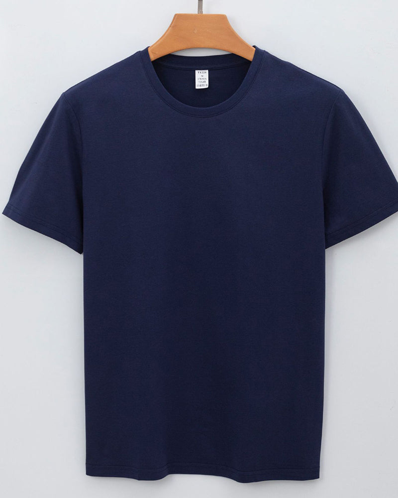 Cotton Plant Fibre Solid Color Crew Neck Men's T-shirt S-4XL
