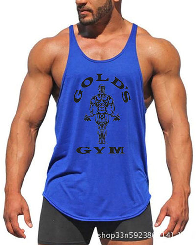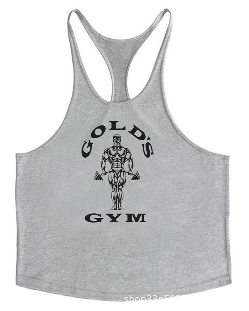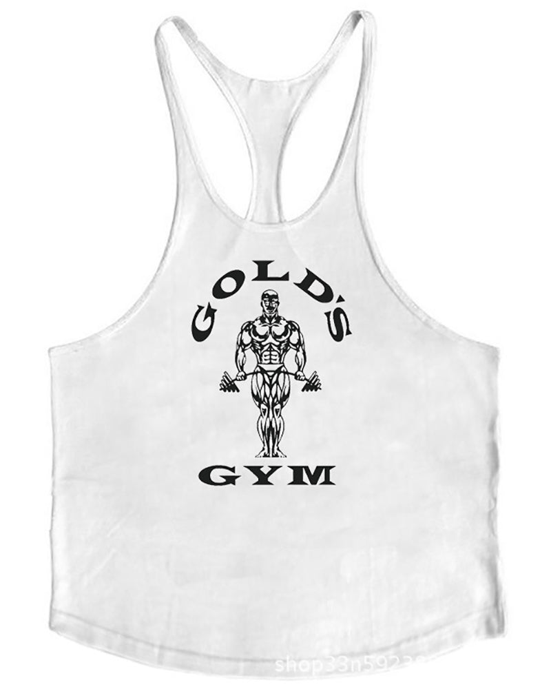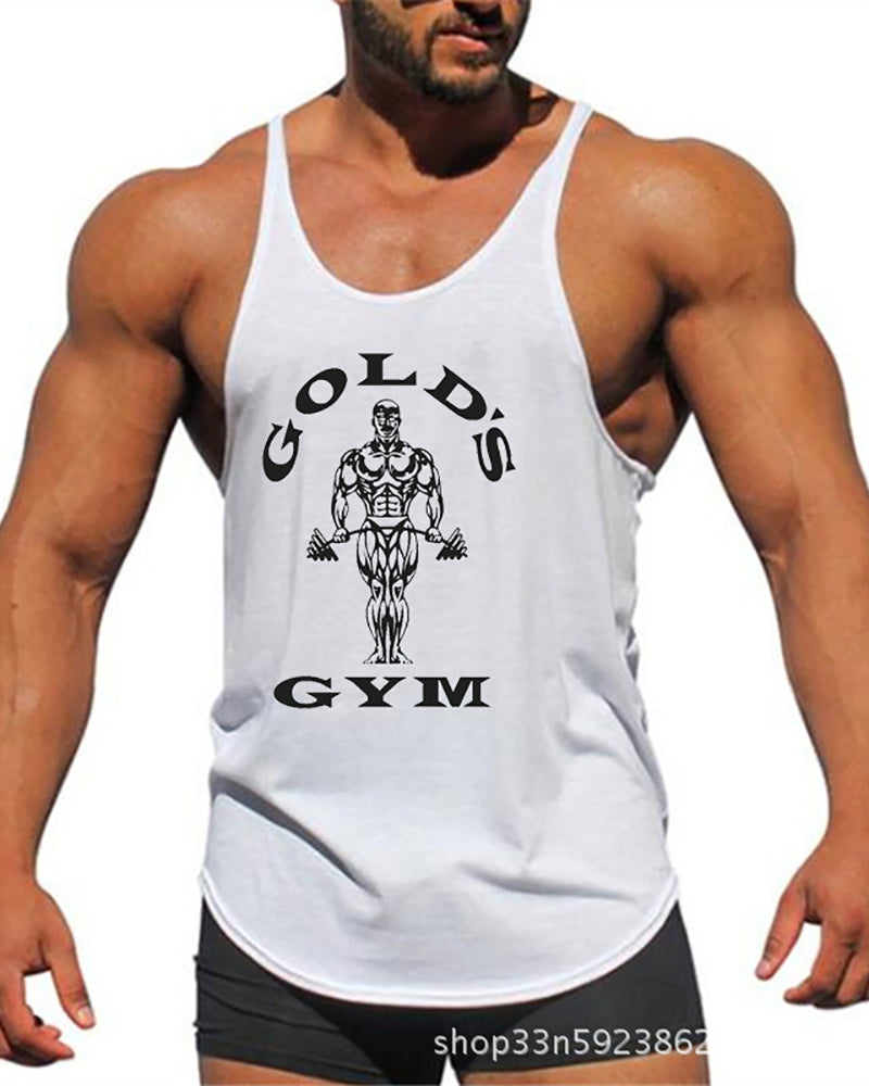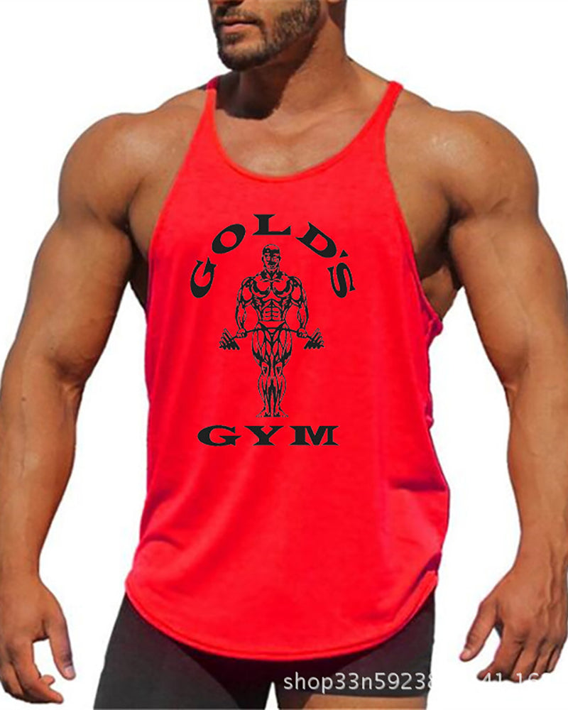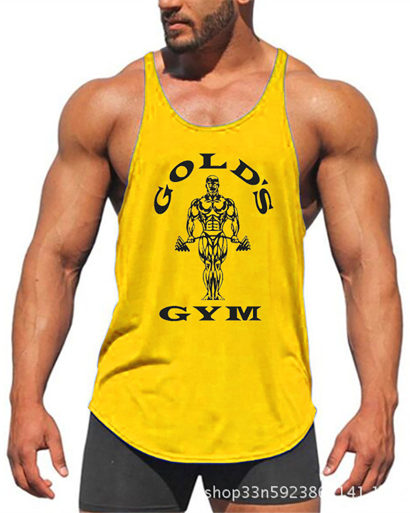 Gym Printed Vest Fitness Circular Hem Training Men's Sling Vest White Yellow Red Gray Blue M-2XL