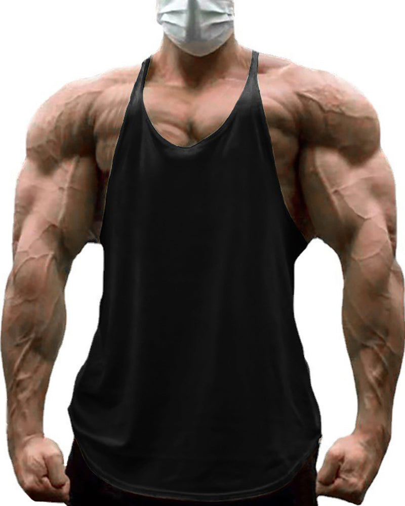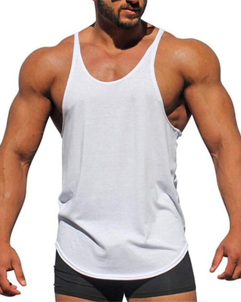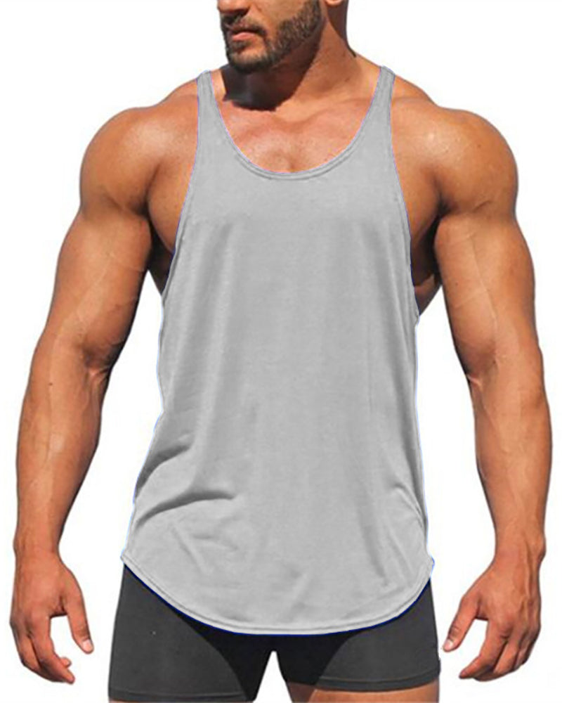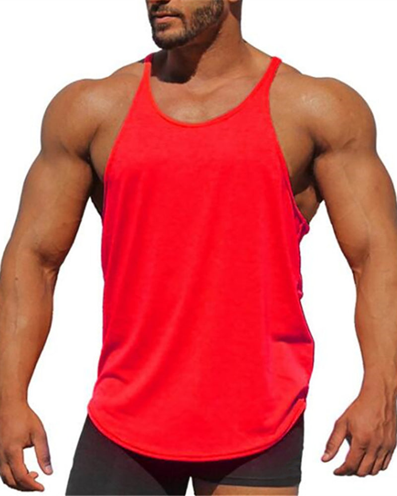 Men's Solid Color Sports Vest Fitness Thin Belt I-Back Halter Top White Yellow Red Gray Blue Black M-2XL