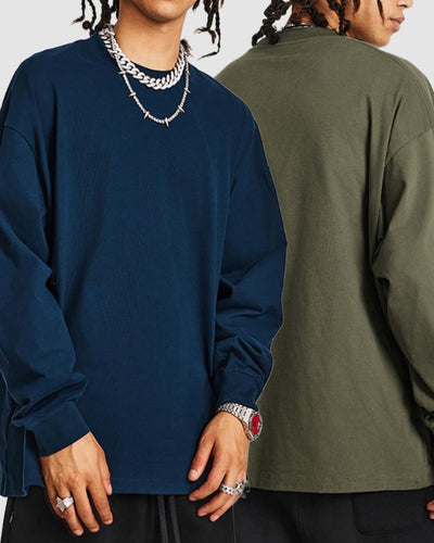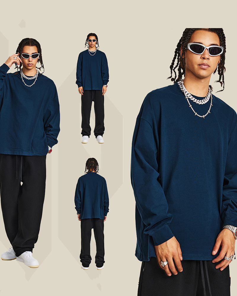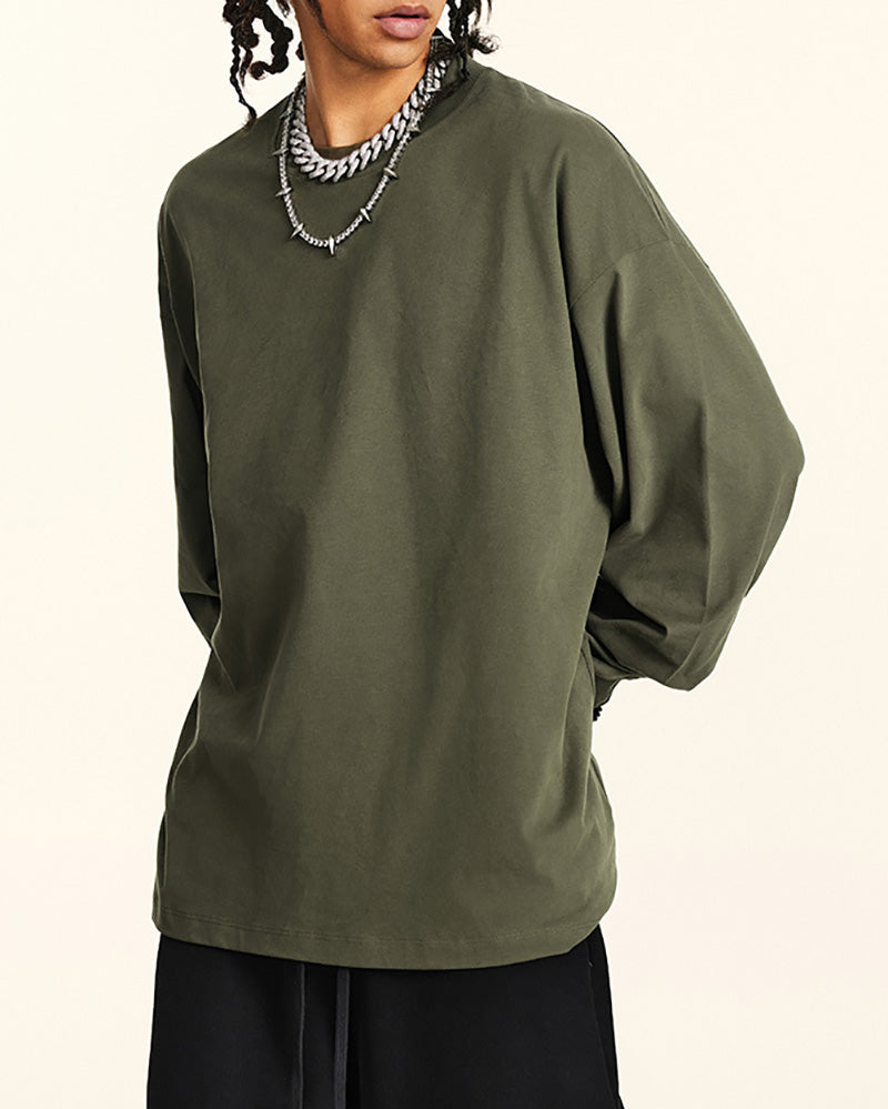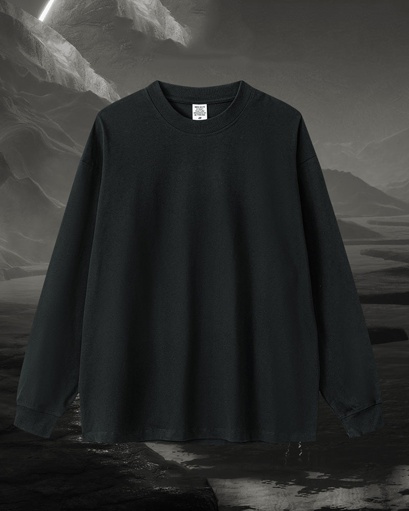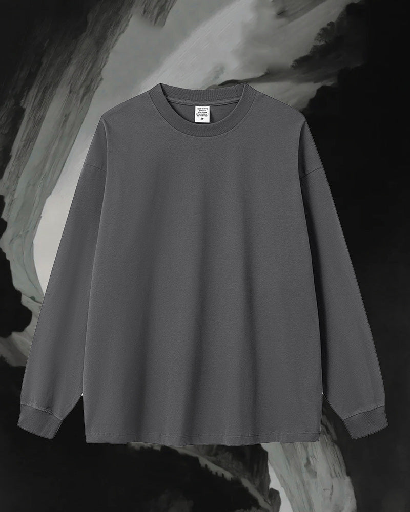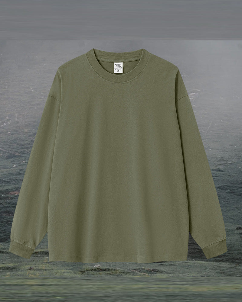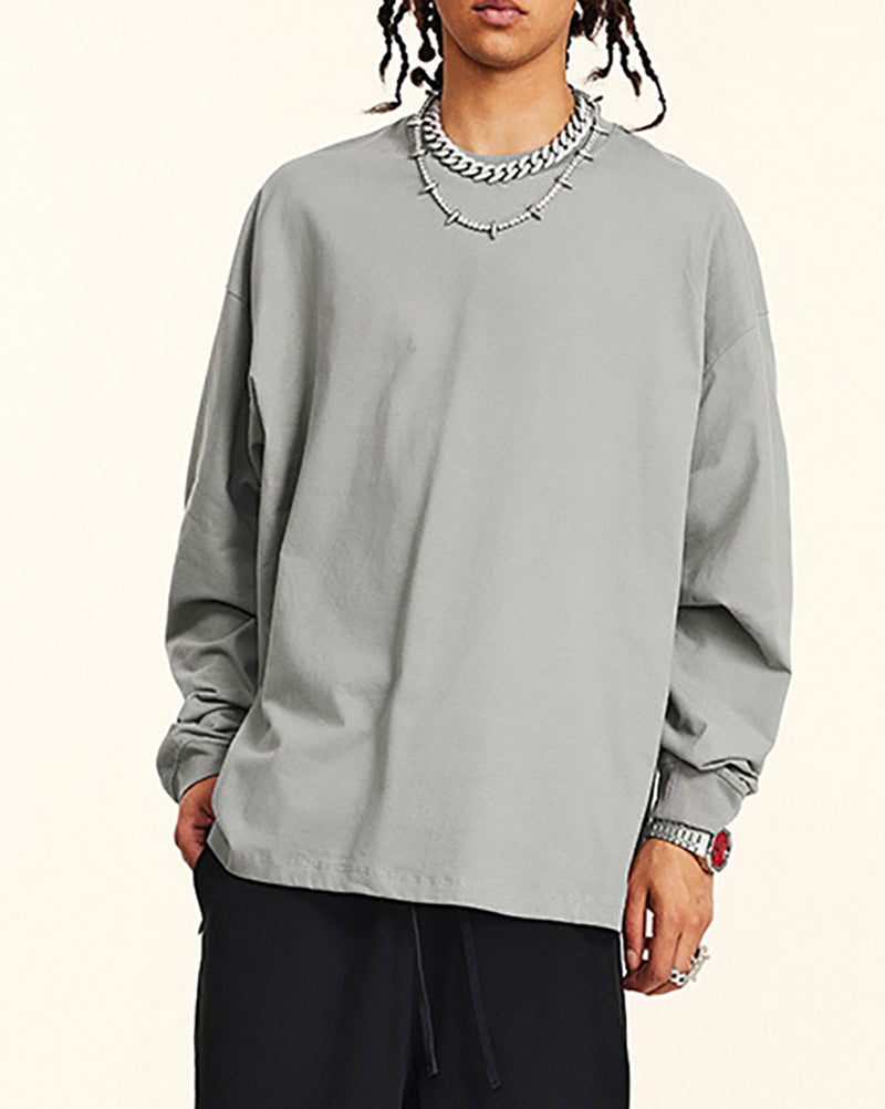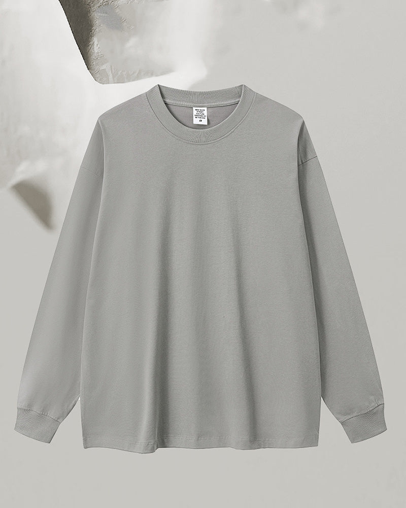 Crew Neck Long Sleeve Solid Color Autumn Loose Sports Basic T-shirt S-2XL