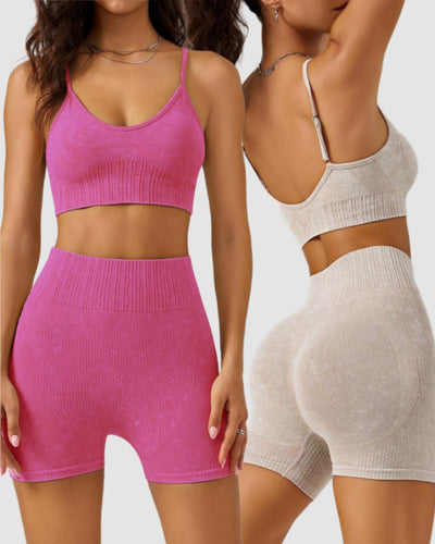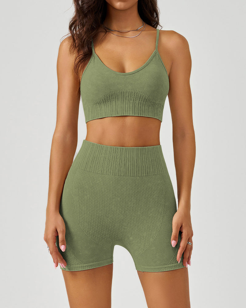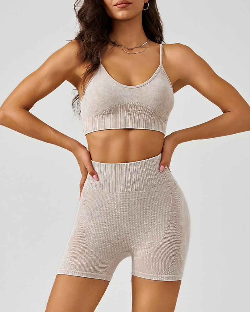 Custom OEM ODM Women High Waist Women Yoga Two-piece Shorts Set S-XL