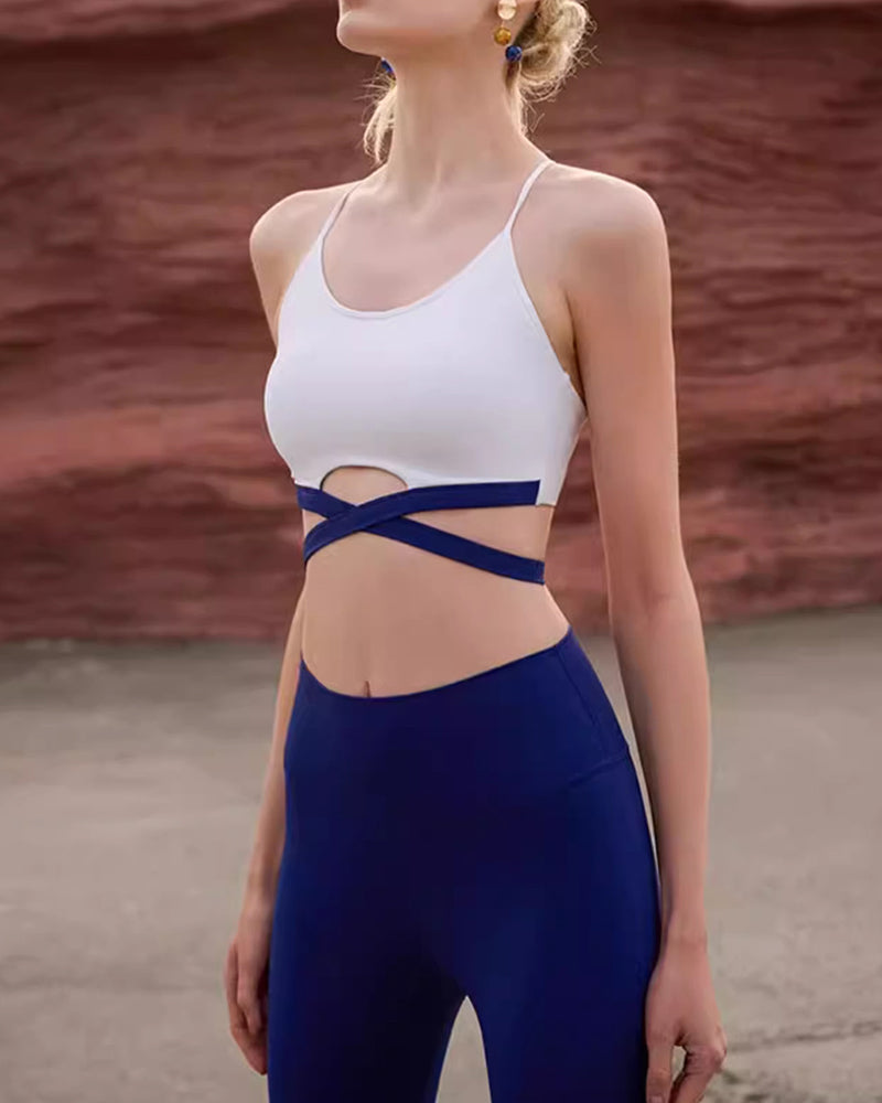 Factory Price Women Criss Cross Waist Sports Bra Fitness Leggings Yoga Two Piece Sets S-L