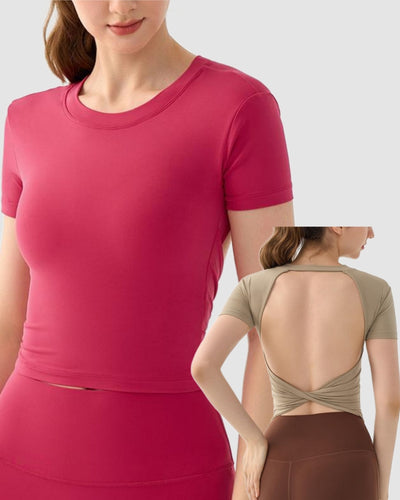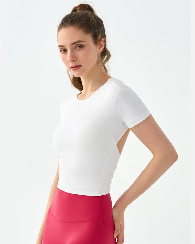 Logo Printed Backless Short Sleeve Women O Neck Slim Fitness T-shirt S-XL