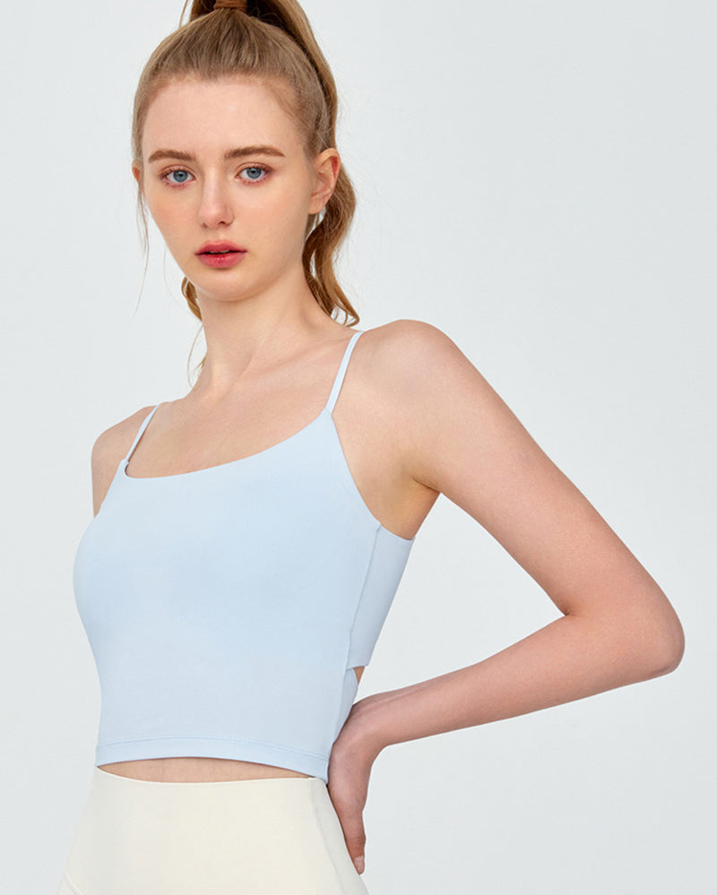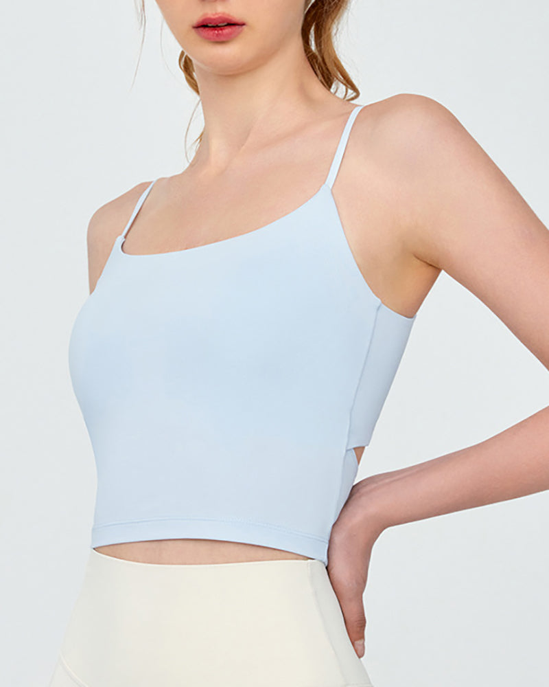 New Women Wholesale Solid Color Sling Running Fitness Sports Vest (With Pad) S-XL