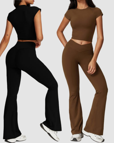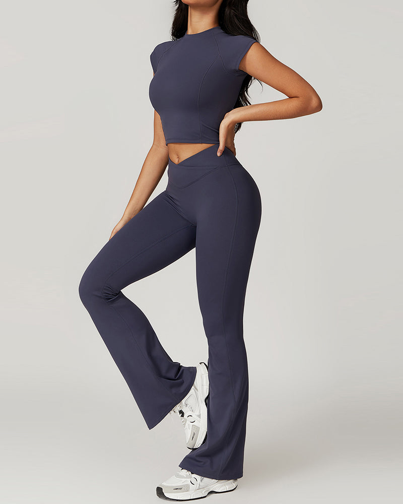 OEM Women Shorts Sleeve T-shirt High Waist Wide Leg Running Pants Yoga Two-piece Sets S-XL