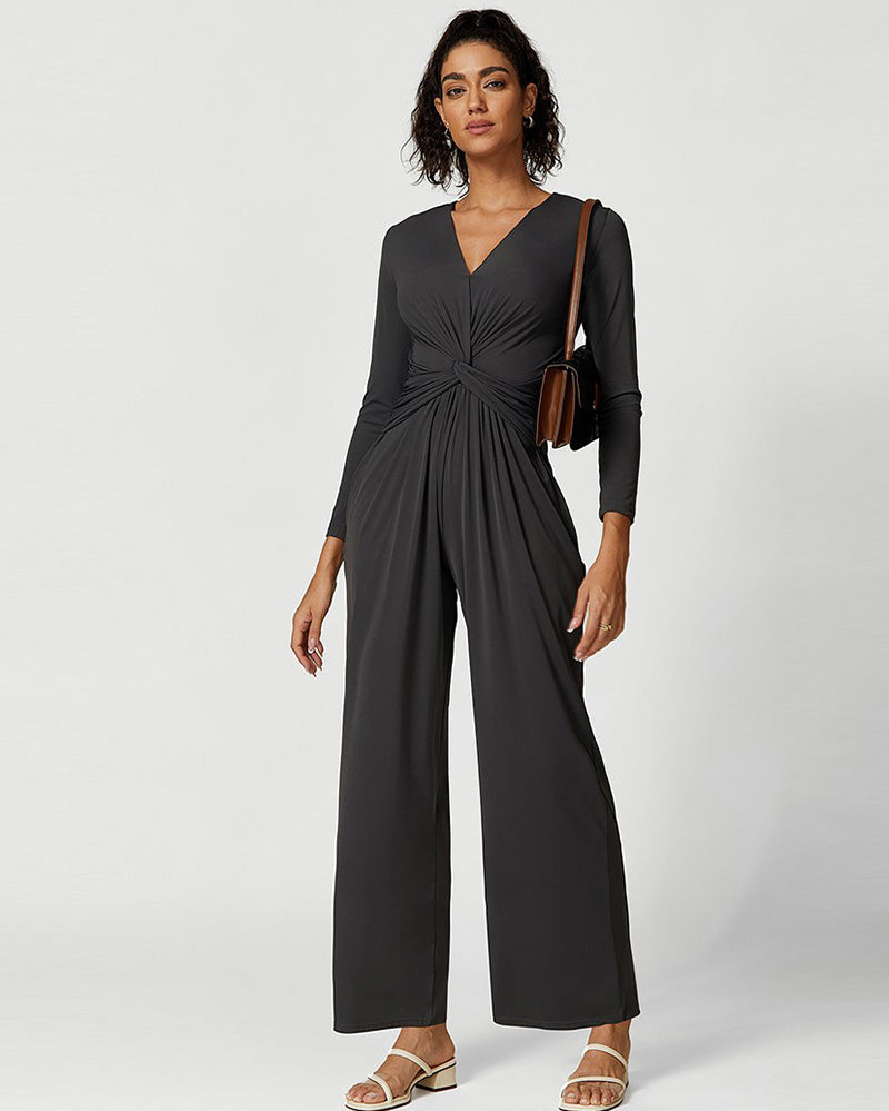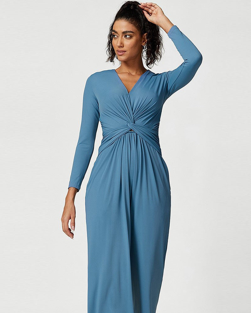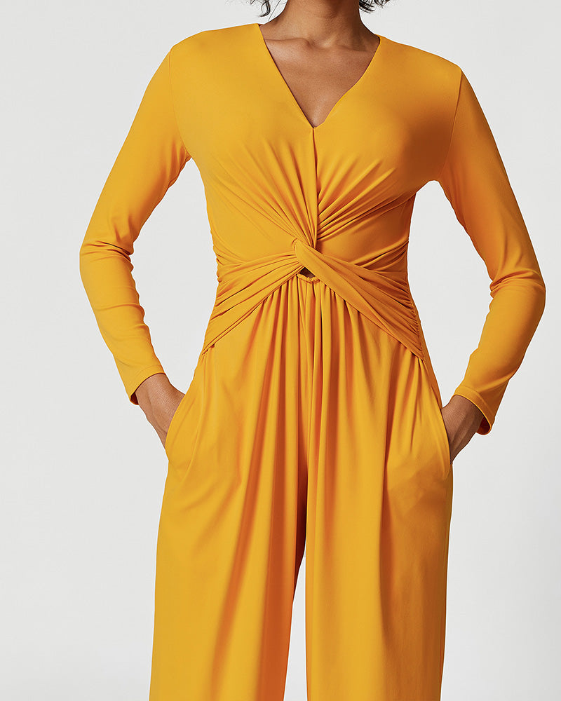 Sexy V Neck Ruched High Slit Yoga Sports Jumpsuit S-L