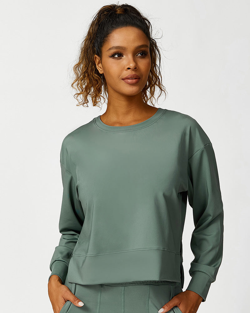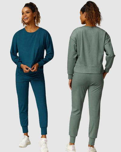 Wholesale Autumn New O-Neck Outdoor Work Out Long Sleeve Sweatshirt Pants Wear Fitness Two Piece Sets S-L
