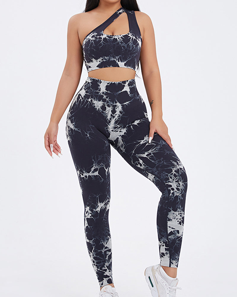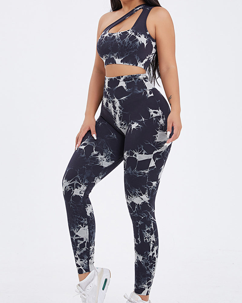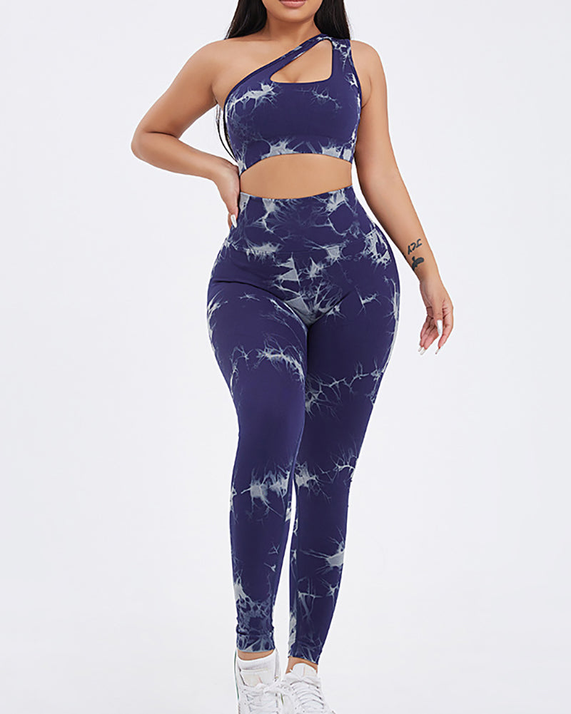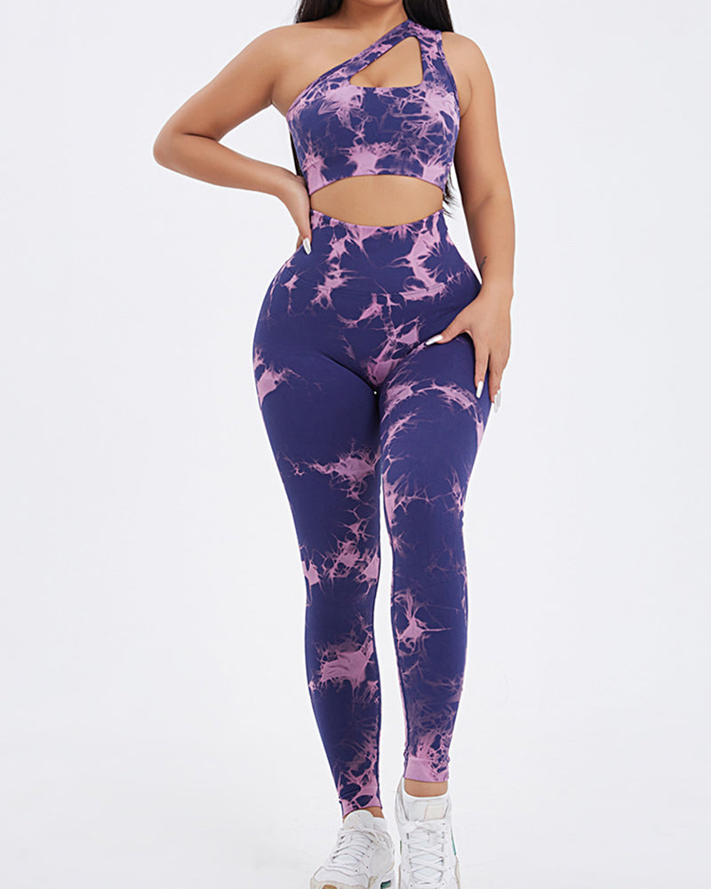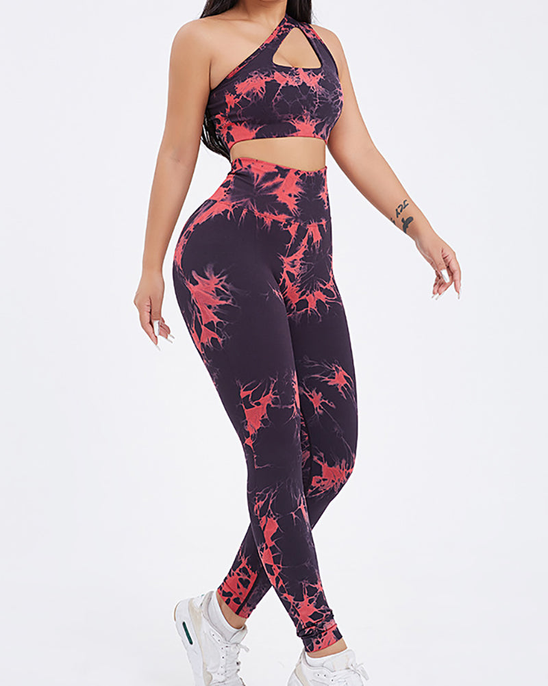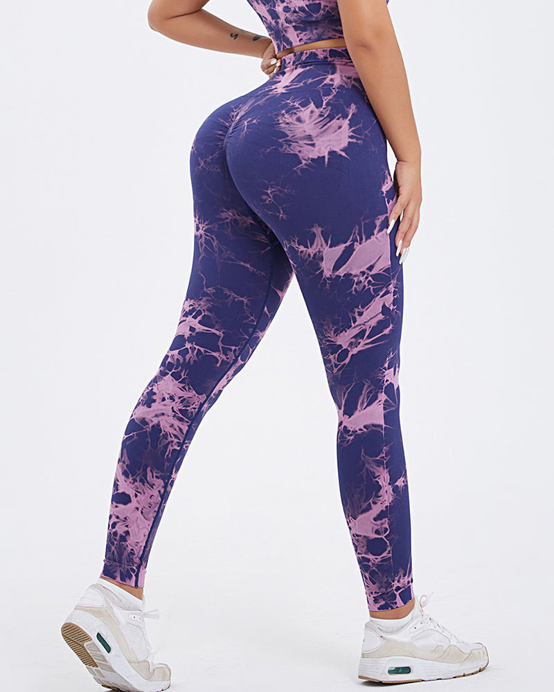 Woman Tie Dye High Waist Hip Lips Slim Sport Running Pants S-L