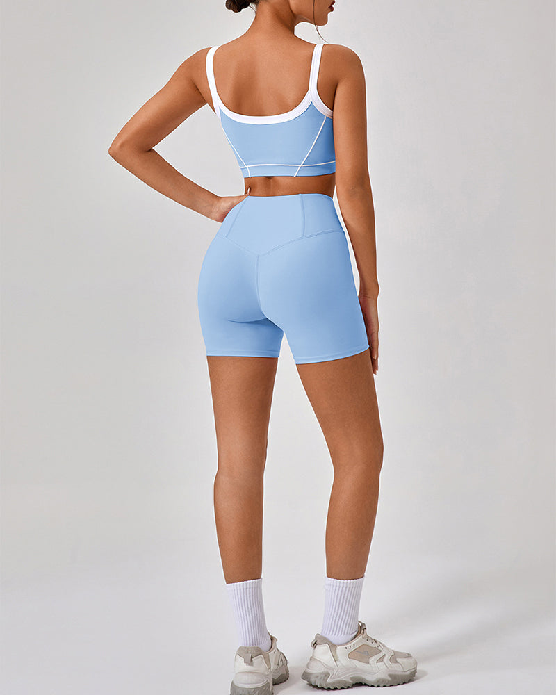 Women Colorblock High Waist Shorts Sets Yoga Two-piece Sets S-XL