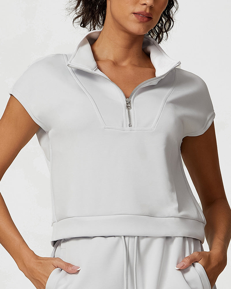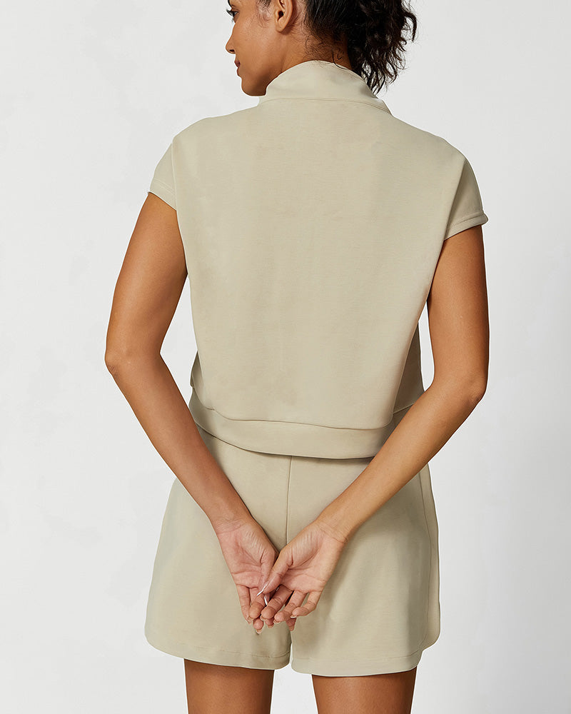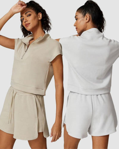 Women Modal Sports Half Zipper Neck Short Sleeve Casual Fitness Shorts Sets Two Piece Set S-L