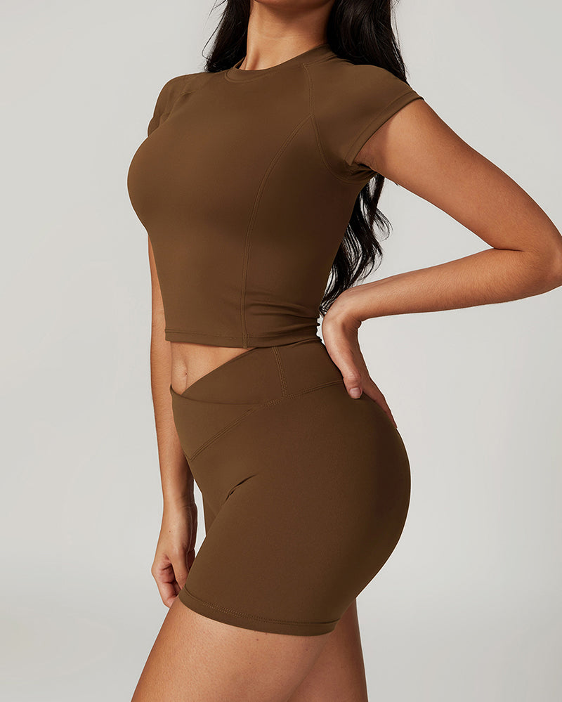 Women Short Sleeve T-shirt Sports Shorts Yoga Two-piece Sets S-XL