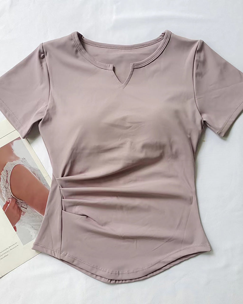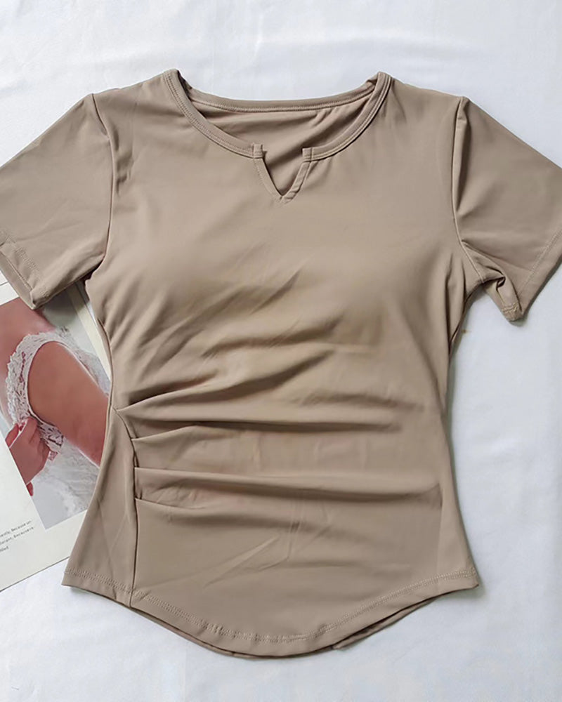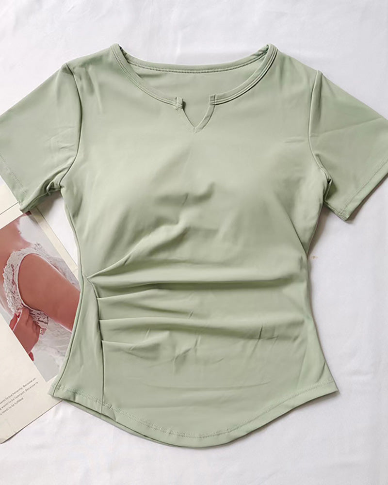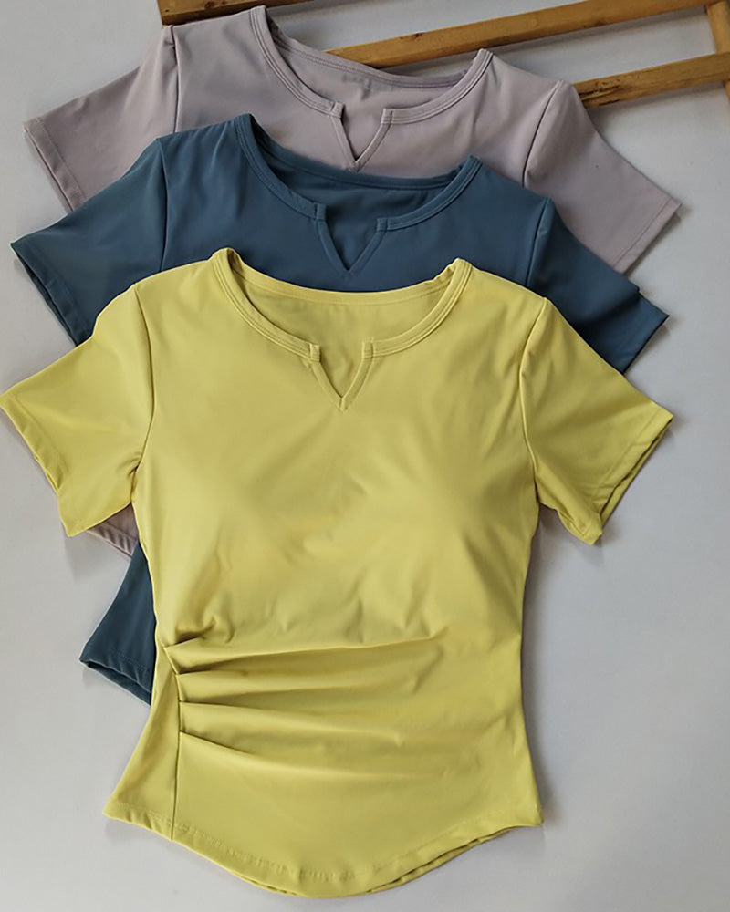 Women Short Sleeve V Neck Quick Drying Slim Running Sports T-shirt S-L