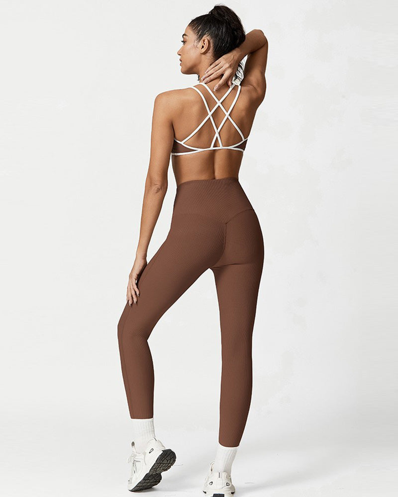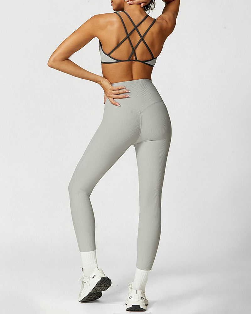 Women Sling Sports Bra High Waist Leggings Pants Yoga Two-piece Sets XS-L