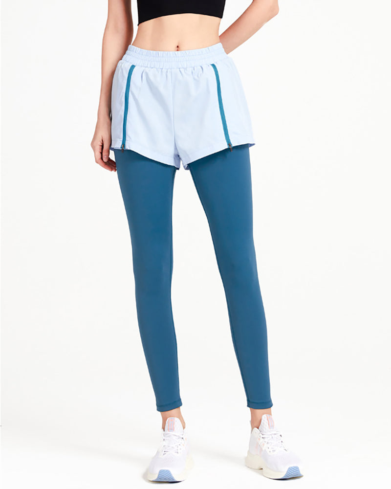 Ladies Fashion Nude Fake Two-piece Fitness Pants High Waist Hip Tight Stretch Sports Pants S-XL