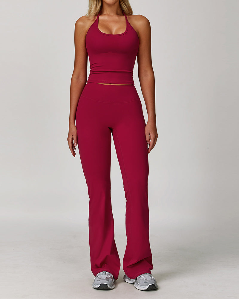 OEM Women Vest And Wide Leg Pants Sports Yoga Two-piece Sets S-XL