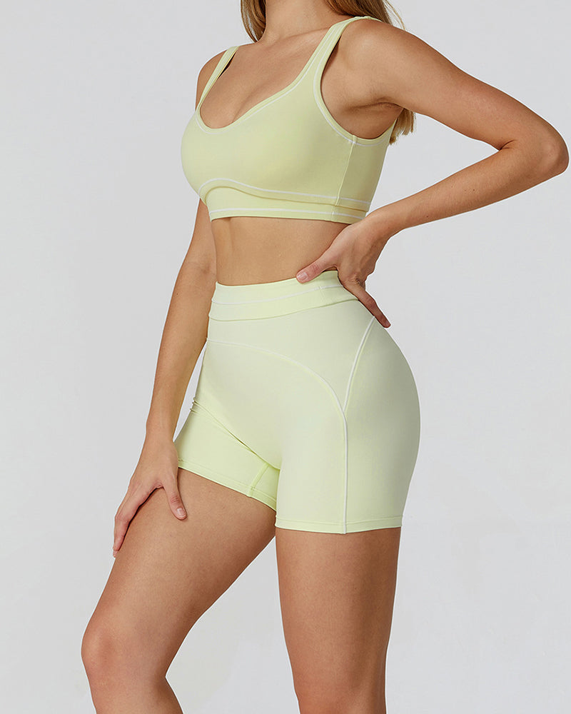 Women Logo Add Colorblock Yoga Bottom Mini Tight Shorts S-XL
