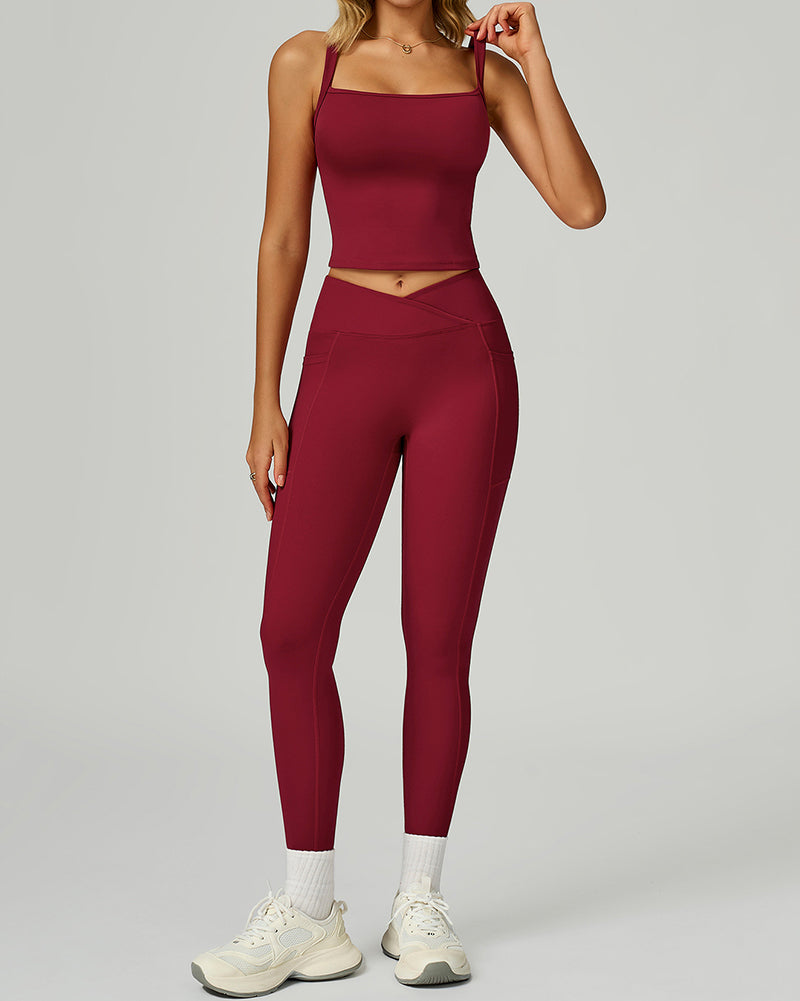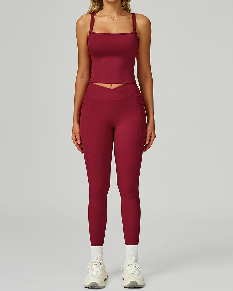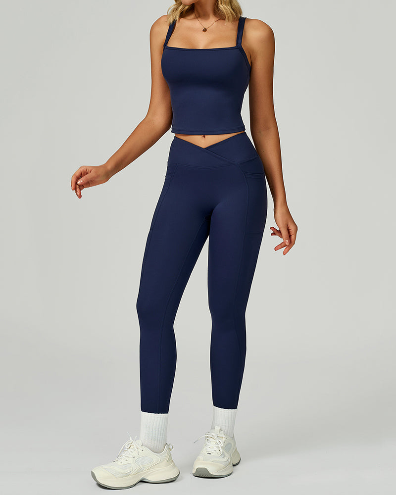Women OEM Service Solid Color Vest Leggings Two Piece Yoga Sets S-XL